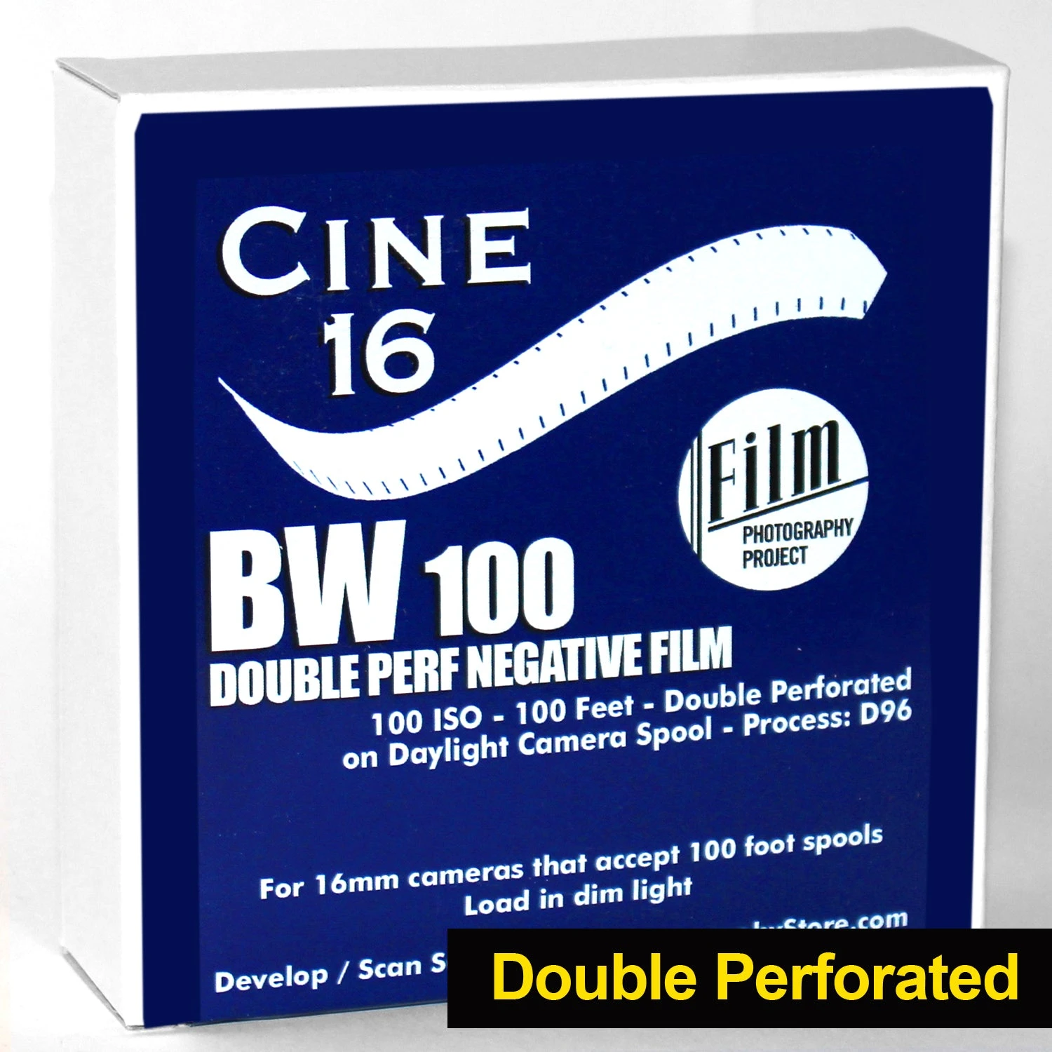 The CINE16 DOUBLE PERF BW Negative (100 ISO) is fresh, panchromatic BW negative film stock on 100 foot (30 meter) daylight spool ready to load into your 16mm cine camera. Film is on a triacetate base with medium grain.